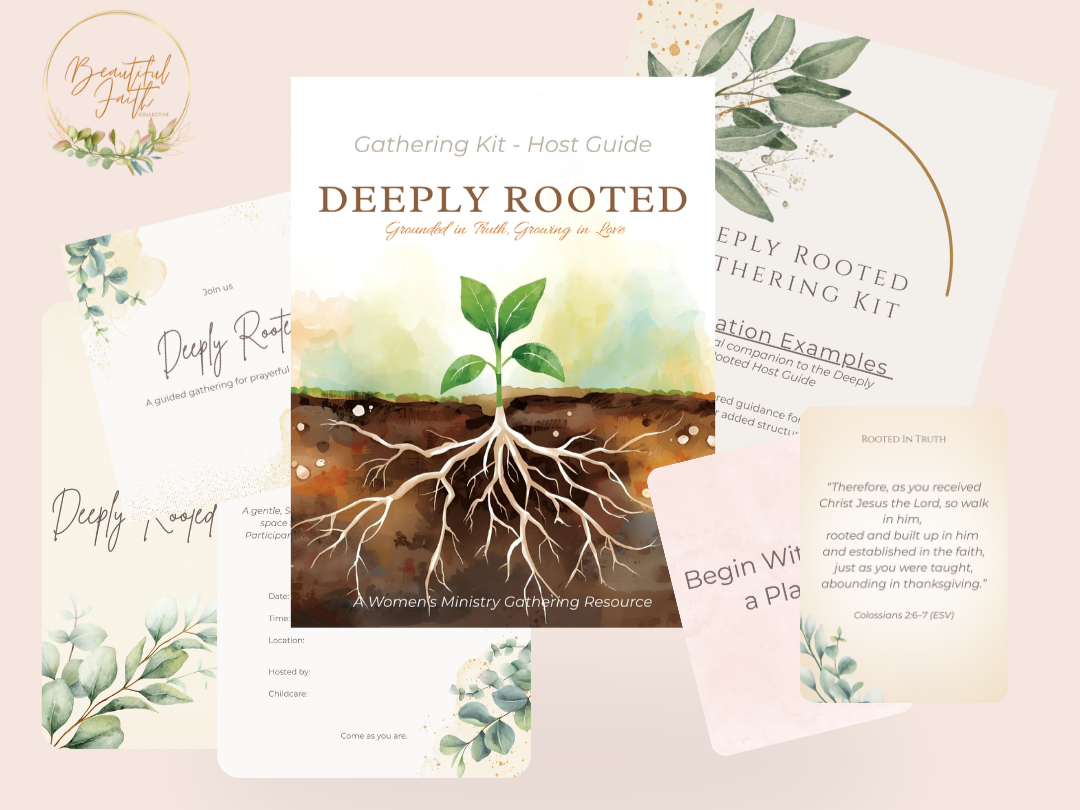 A thoughtfully crafted kit with prompts and printables to help you host warm, Scripture-focused gatherings inspired by Deeply Rooted.